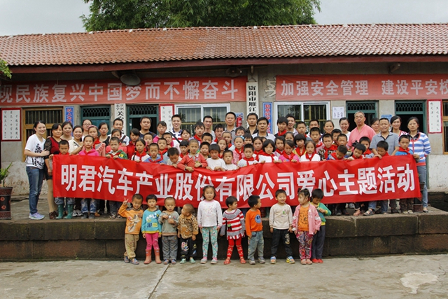 为继承和发扬中华民族爱幼的优秀传统文化,展现公司人文情怀,逐步实现“同创共享,回报社会”的企业使命;同时加强优秀员工之间的沟通与交流,展现公司优秀团队风采。2014年9月19日,明君汽车集团组织本部2014第一、二季度优秀员工到四川资阳万福庵小学开展了关爱留守爱心联谊活动。