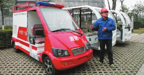“我们的消防设施,水箱、消防泵等都装在这里面的,水箱装满有2吨左右,还有接头,可以边喷边灌水。”企业技术工程师易飞告诉记者,这款小型消防车是企业去年研发成功的新能源汽车的一部分,属于纯电动专用汽车,今年正式开始上市,初期投放了100辆在市场上,反响效果很好,订单纷至沓来。